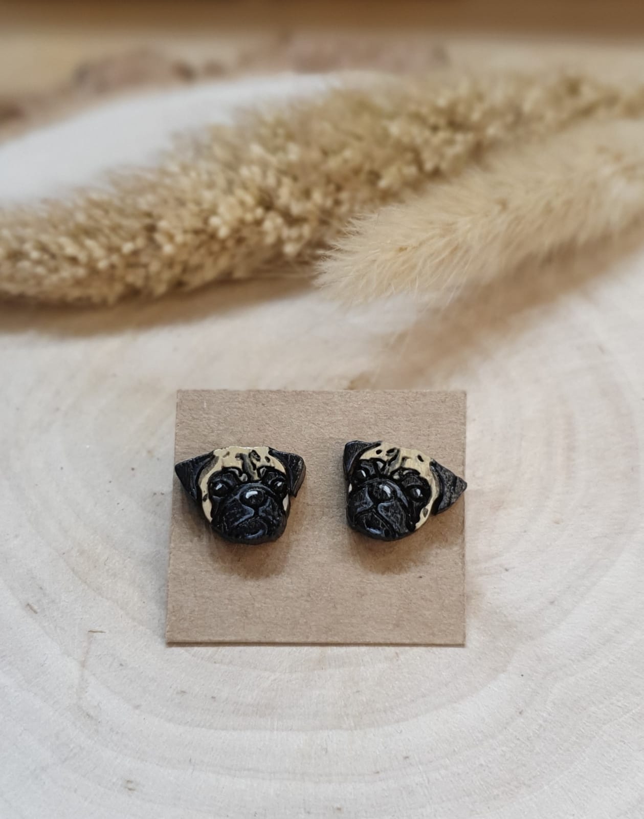 Kolczyki drewniane, ręcznie malowane. Sztyft ze stali chirurgicznej. Zatyczki silikonowe.